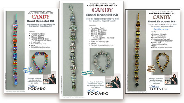 Candy Beaded Bracelets look like colorful, hard candies all strung together. In reality, they are made of individual beads woven together into a tube of larger beads, which creates the illusion of a multicolored candy bangle bracelet.