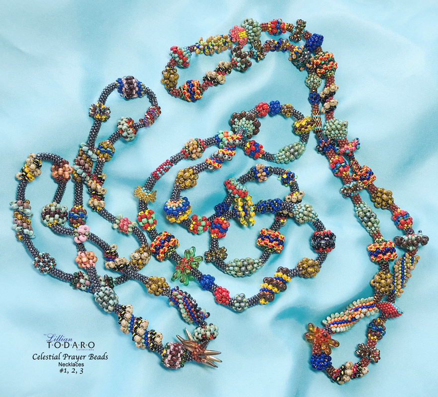 The Dimensional Nuances and Elemental forms of each bead structure evokes mystical inspiration and calm. Each is separated by lustrous Gunmetal colored seed beads. Each unique necklace is a vivid interaction of rich colors, earthy tones and textures. Each signed with a “Lil” bead.