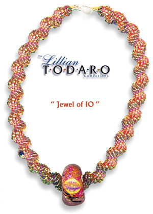 Sculpted of: Czech, French, Japanese seed and vintage sequins. The center jewel bead is a hand blown doughnut glass bead by glass artist Asho and is signed Asho 2001.